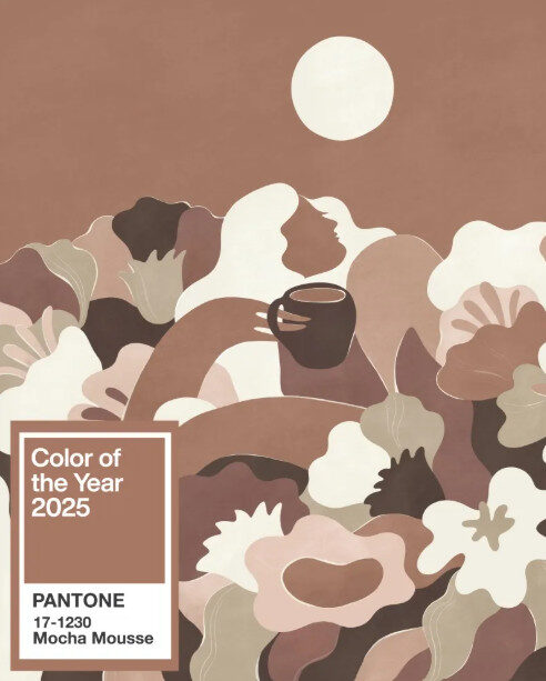 A 2025-ös Év Színe a Pantone 17-1230 Mocha Mousse, egy meleg, gazdag, enyhén csokoládéra és mokkára emlékeztető barna árnyalat. Ez a tónus nem csupán egy trendi szín – érzelmi üzenetet hordoz: