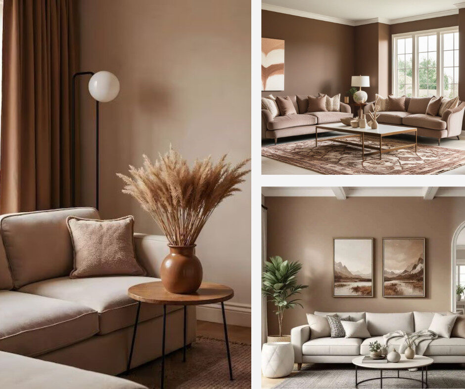 A Mocha Mousse remek „háttérszín”, amelyhez könnyű más árnyalatokat társítani. Krémes fehérekkel, bézsekkel és természetes fa felületekkel kombinálva letisztult, nyugodt atmoszférát teremt – ideális választás nappaliba vagy hálószobába.