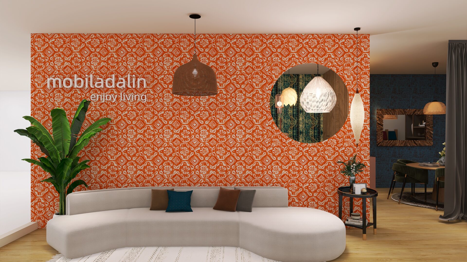 Egy bútorbolt felkérésére egy kiállítási stand teljes enteriőrtervezését készítettük el, ahol elsődleges szempont volt, hogy a megbízó saját bútorai, lakástextíliái és tapétái kerüljenek fókuszba. A koncepció kialakításánál fontos cél volt a minimális építési igény, hogy a stand költséghatékonyan, mégis látványosan valósulhasson meg.