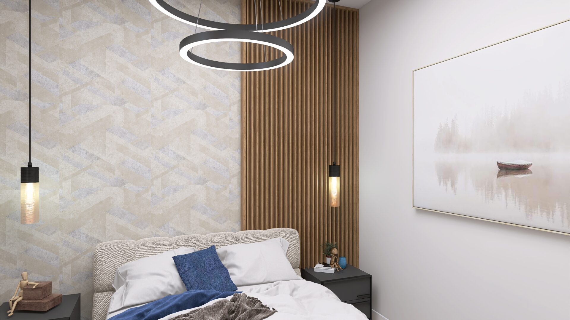 A modern, letisztult lámpatestek tudatos ritmust hoznak létre a nappali–étkező zónában, míg az egyedi tervezésű bútorok arányosan illeszkednek a tér adottságaihoz. A gardróbban és tárolókban alkalmazott rejtett világítások nem csupán praktikusak, hanem finoman emelik a tér minőségérzetét is.